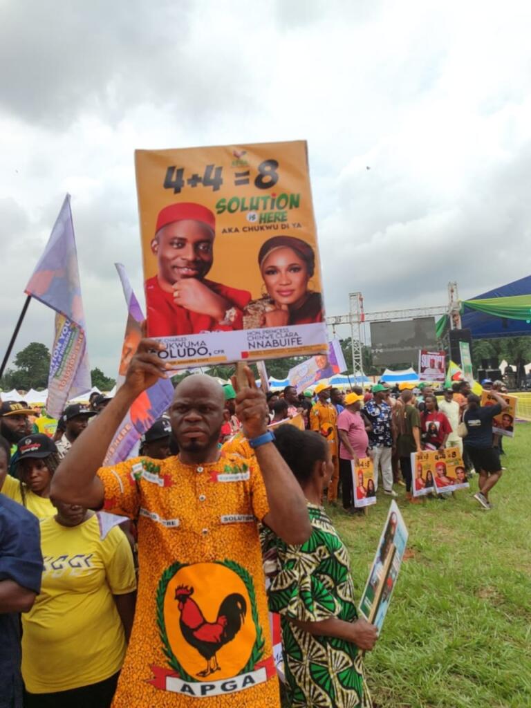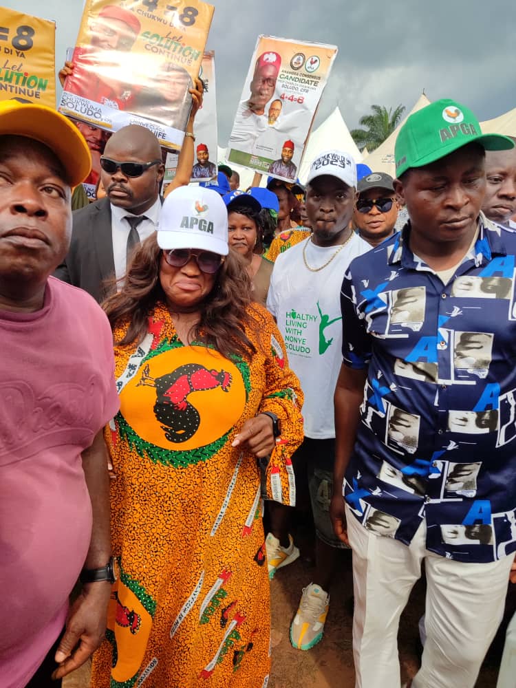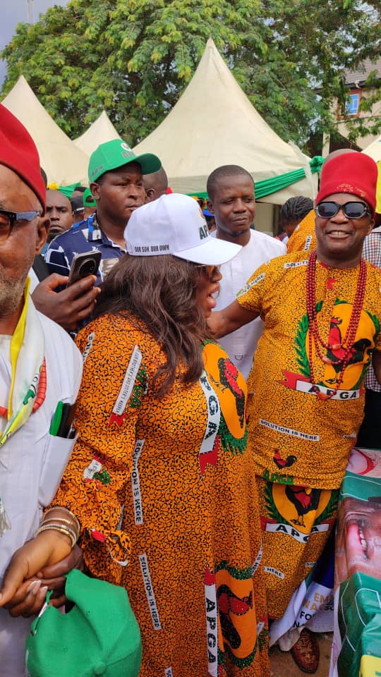 Arriving in her signature style, Adaejiejemba’s presence was both commanding and inspiring. Her team, made up of committed grassroots mobilizers, APGA faithfuls, and community leaders from Orumba, joined the people of Obosi to declare loud and clear: “Solution Must Continue!”