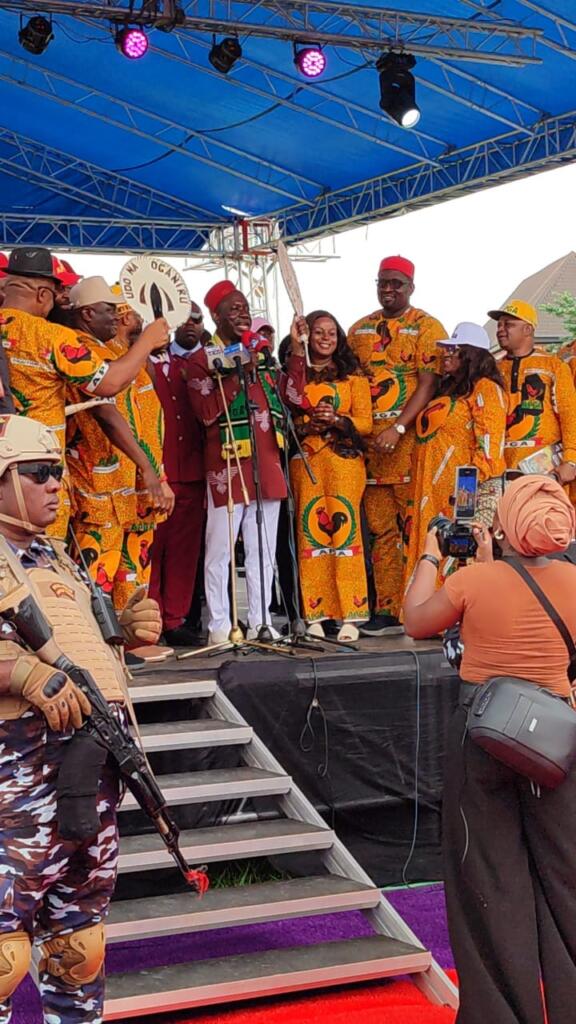 The rally’s high points included the presentation of a ₦50 million cheque from the people of Obosi to Governor Soludo, cultural performances, and gifts from youth and women’s groups—symbolizing the unity and strength of APGA’s political family.